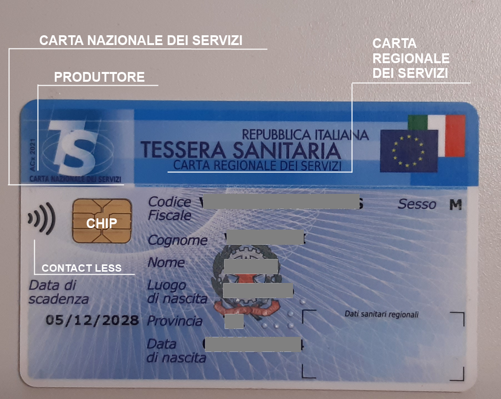 E' la Tessera Sanitaria completa di Carta Nazionale Servizi (CNS), che si riconosce per la presenza del "chip" (vedi figura), ed è una vera Smart Card che può essere utilizzata per i seguenti servizi: